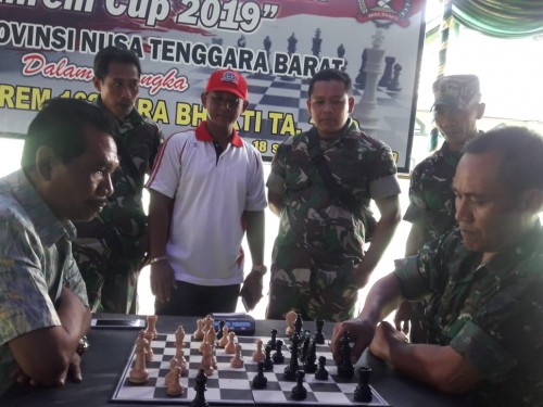 Bima – Turnamen Catur Danrem Cup I 2019 secara resmi dibuka oleh Kasdim 1608/Bima Mayor Inf Hardani di Makodim 1608/Bima, Senin (18/2).