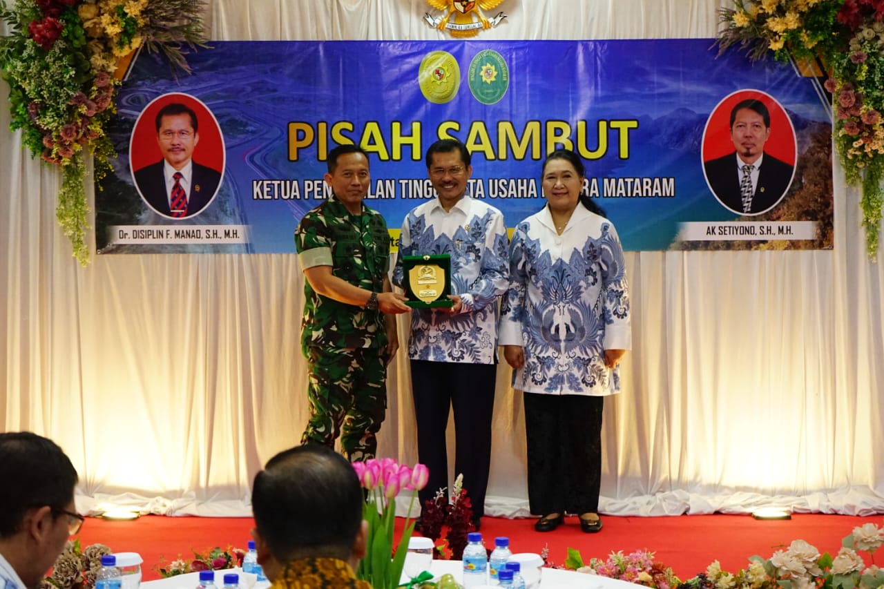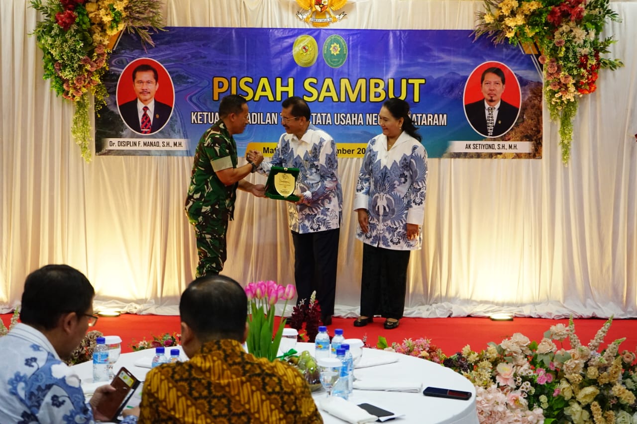 MATARAM, NTB – Kepala Staf Korem 162/Wira Bhakti, Kolonel Inf Wirawan Eko Prasetyo, S.E., M.H., menghadiri acara pisah sambut Ketua Pengadilan Tinggi Tata Usaha Negara (PTTUN) Mataram yang berlangsung di Ruang Sidang Utama Kantor PTTUN Mataram, Jalan Mahoni Nomor 3, Monjok Barat, Kota Mataram. Acara ini merupakan momen pergantian kepemimpinan dari Dr. Disiplin F. Manao, S.H., M.H., kepada Setiyono, S.H., M.H. Jumat (19/09/25).