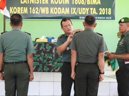 Bima – Kepala Staf Korem 162/WB Letnan Kolonel Inf Endarwan Yansori menutup Latihan Teknis Teritorial (Latnister) tahun 2018 Kodim 1608/Bima di Aula Markas Kodim 1608/Bima, Senin (26/11).