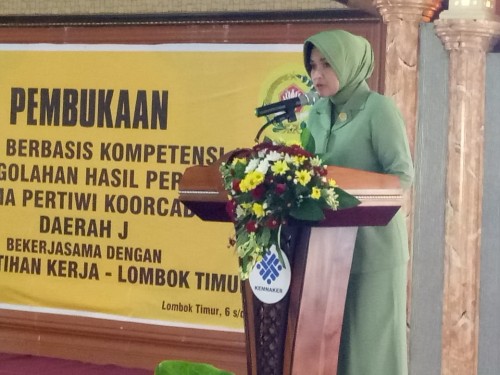 Lombok Timur – Gabungan persatuan ibu-ibu istri para Prajurit TNI yang dikenal dengan Dharma Pertiwi Koorcab NTB Daerah J menggelar Pelatihan Berbasis Kompetensi (PBK) jurusan pengelolaan hasil pertanian bekerjasama dengan Balai Latihan Kerja (BLK) Internasional Lombok Timur di BLK Internasional Lombok Timur, Rabu (6/2).