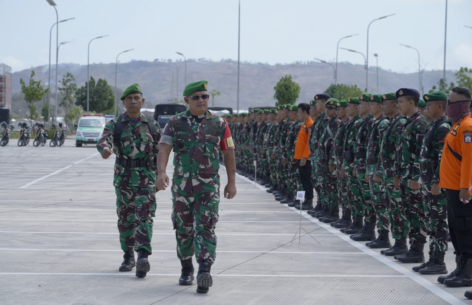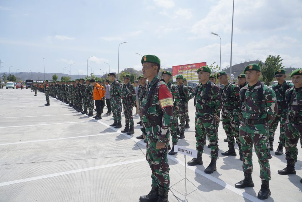 Lombok Tengah-NTB, Korem 162/Wira Bhakti menggelar apel pasukan dalam rangka Simulasi Kontijensi Penanganan Bencana Alam Gempa Bumi dan Tsunami guna menyukseskan pelaksanaan MotoGP 2024. Apel tersebut dipimpin oleh Kepala Seksi Operasi Kasrem 162/Wira Bhakti, Kolonel Kav Suep, S.I.P., M.Sc., AIFO, dan dilaksanakan di lapangan parkir VIP Deluxe Pertamina Mandalika International Street Circuit, Desa Kuta, Kecamatan Pujut, Kabupaten Lombok Tengah, pada Kamis (19/9/2024).