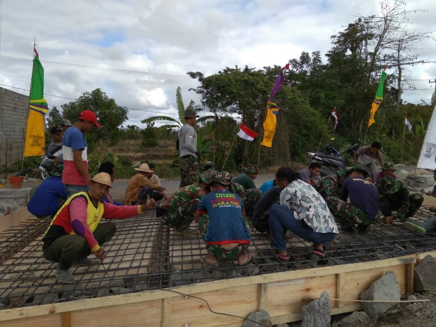 Selong – Amaq Pita Rohana Ketua RT 03 Dusun Lingkok Baru Desa Sukadamai Kecamatan Jerowaru Kabupaten Lombok Timur pada Minggu pagi (15/7) mengerahkan para tukang yang ada di kampungnya untuk membantu para personel TMMD ke 102 tahun 2018 untuk membangun sebauh jembatan di jalan usaha tani yang sedang dikerjakan.
