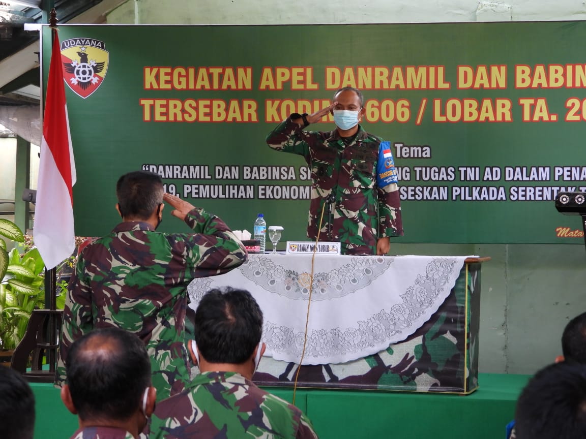 Dengan mengangkat tema “Danramil dan Babinsa Siap mendukung tugas TNI AD dalam penanganan pemulihan ekonomi dan mensukseskan pilkada Serentak tahun 2020”, kegiatan yang di buka langsung Komandan Kodim 1606/Lobar Kolonel Arm Gunawan tersebut rencananya apel Danramil dan Babinsa akan dilaksanakan selama tiga hari ke depan akan diisi dengan pemberian berbagai materi dari masing-masing Perwira Staf sesuai dengan bidangnya dengan harapan agar dapat diimplementasikan untuk menunjang pelaksanaan tugas sebagai Danramil dan Babinsa di wilayah binaan masing-masing.