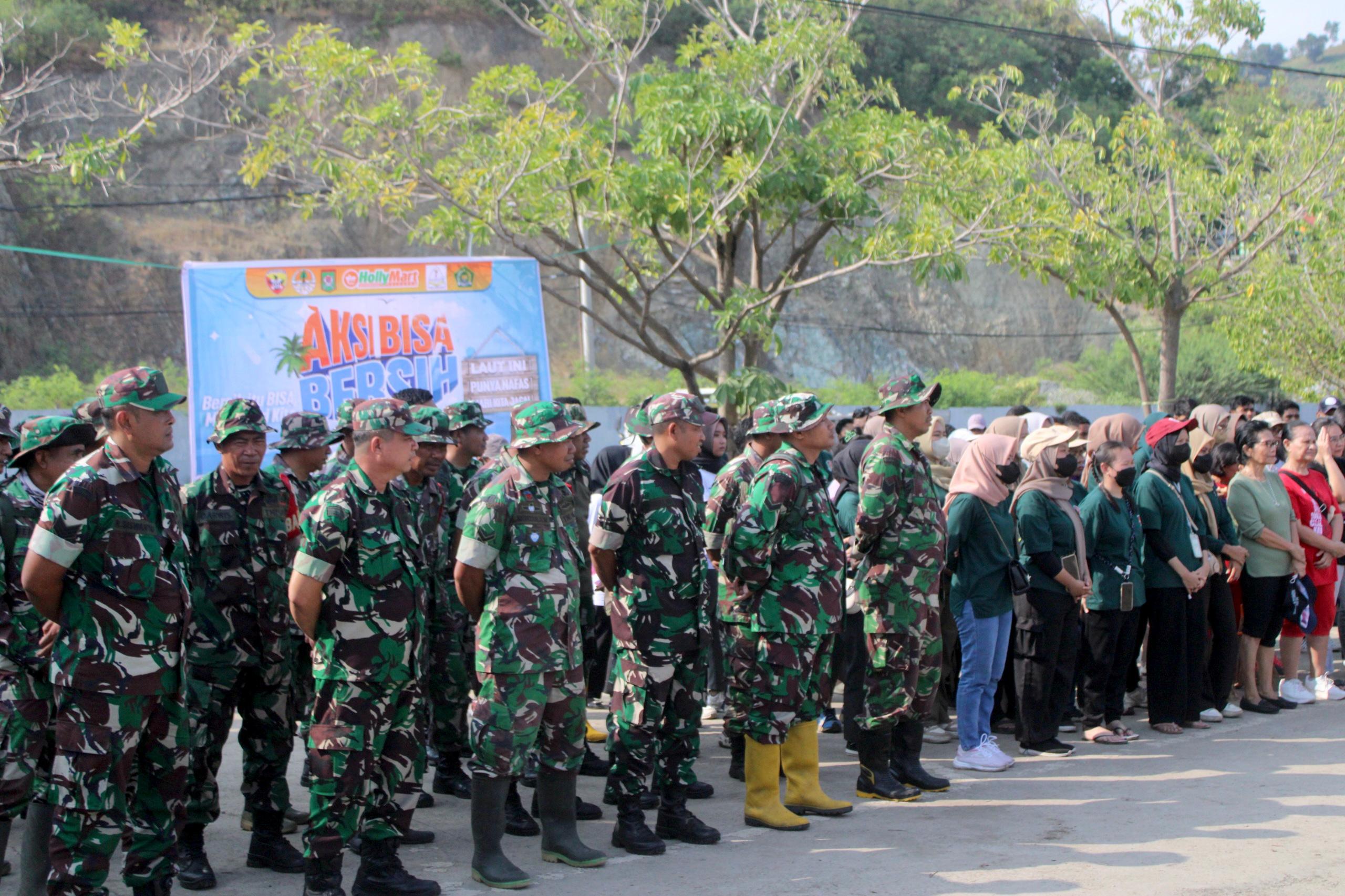 Dalam rangka mendukung Program Pemerintah Kota Bima bertajuk BISA (Bersih, Indah, Sehat, Asri), Kodim 1608/Bima menggelar kegiatan Karya Bakti dengan tema “Bersih Itu Bisa Mulai dari Kita” pada Sabtu, 21 Juni 2025. Kegiatan berlangsung dari pukul 07.00 hingga 09.30 WITA di kawasan Pantai Amahami, Kelurahan Dara, Kecamatan Rasanae Barat, Kota Bima, dan melibatkan sekitar 100 orang peserta dari berbagai elemen. Turut hadir Danramil 1608-01/Rasanae, Pasi Opsdim 1608/Bima Lettu Inf. Bambang Irawan, Pasi Log dim 1608/Bima Letda Czi. Julkarnain, Direktur Holly Mart Hendra Ruslie, Kabid PSLB3 DLH Kota Bima Aries Dedi Bayu, serta Ketua FKGK Kota Bima Bapak Carles Pangaribuan.
