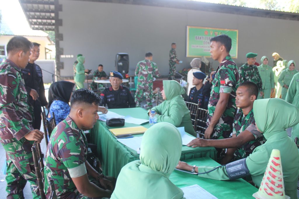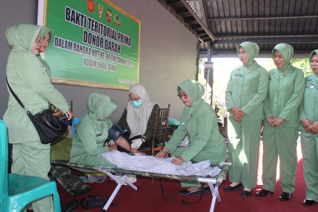 Mataram, NTB – Komando Distrik Militer 1608/Bima menggelar kegiatan bakti sosial donor darah dalam rangka memperingati Hari Ulang Tahun ke-80 Tentara Nasional Indonesia Tahun 2025. Acara yang diselenggarakan di Aula Markas Kodim 1608/Bima berhasil mengumpulkan 68 kantong darah dari 136 peserta. Jumat (19/09/25).