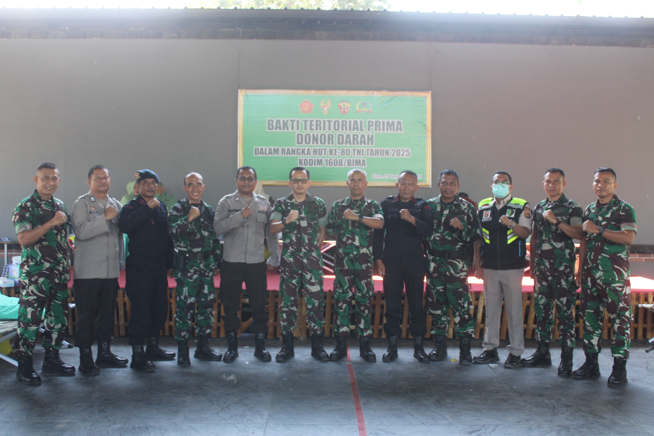 Brigjen Moch. Sjsaul Arif menyampaikan Kegiatan bakti sosial donor darah yang dilaksanakan oleh Kodim 1608/Bima ini merupakan wujud nyata kepedulian TNI terhadap masyarakat. Aksi ini sejalan dengan tema HUT TNI ke-80, yaitu “TNI Bersama Rakyat Siap Menghadapi Berbagai Ancaman dan Tantangan.