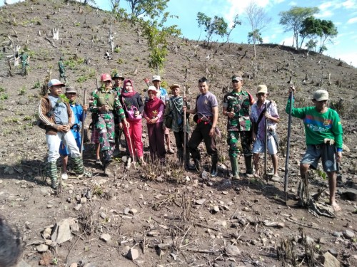 Bima – Sebagai wujud komitmen dan kepedulian TNI terhadap kondisi kerusakan dan penyelamatan hutan di Kabupaten Bima, jajaran Kodim 1608/Bima memprakarsai penghijauan penanaman 13.000 pohon diatas lahan seluas 50 hektar di So Lano Desa Woro Kecamatan Madapangga Kabupaten Bima, Sabtu pagi (5/1).