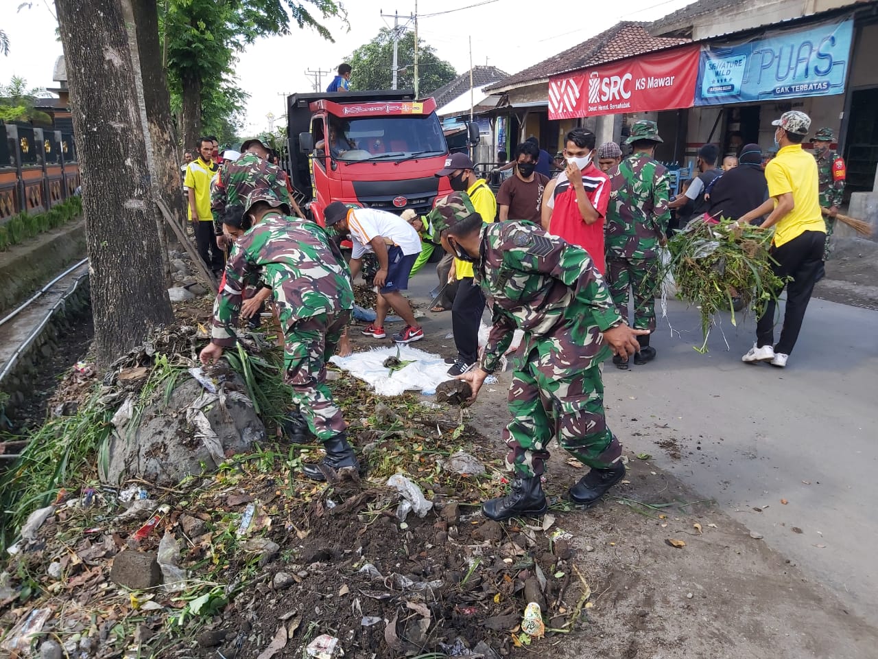 Pada kesempatan tersebut, Pasiter Kodim 1615/Lotim Kapten Inf I Nengah Seneng dan Camat Sikur Lalu Putra, S.Sos., bersama Kades Kotaraja Lalu Wildan memimpin langsung acara gotong royong yang melibatkan ratusan personel Kodim dan masyarakat setempat membersihkan selokan pinggir jalan umum mulai dari depan Kantor Desa menuju Pekuburan Umum Desa Kotaraja sekitar 1500 meter.