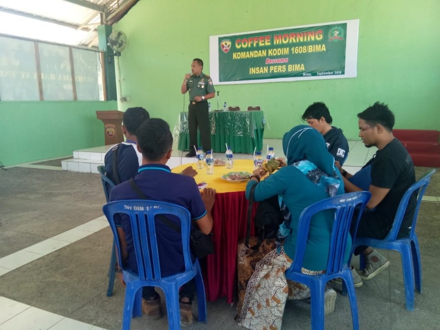 Bima – Siang tadi, Kodim 1608/Bima menggelar acara coffee morning bersama rekan-rekan media wilayah Kabupaten/Kota Bima di Aula Makodim 1608/Bima, Rabu (12/9). Acara coffee morning yang dihadiri puluhan insan pers itu disambut langsung Dandim 1608/Bima Letkol Inf Bambang Kurnia Eka Putra bersama Kasdim dan Perwira Staf Kodim.