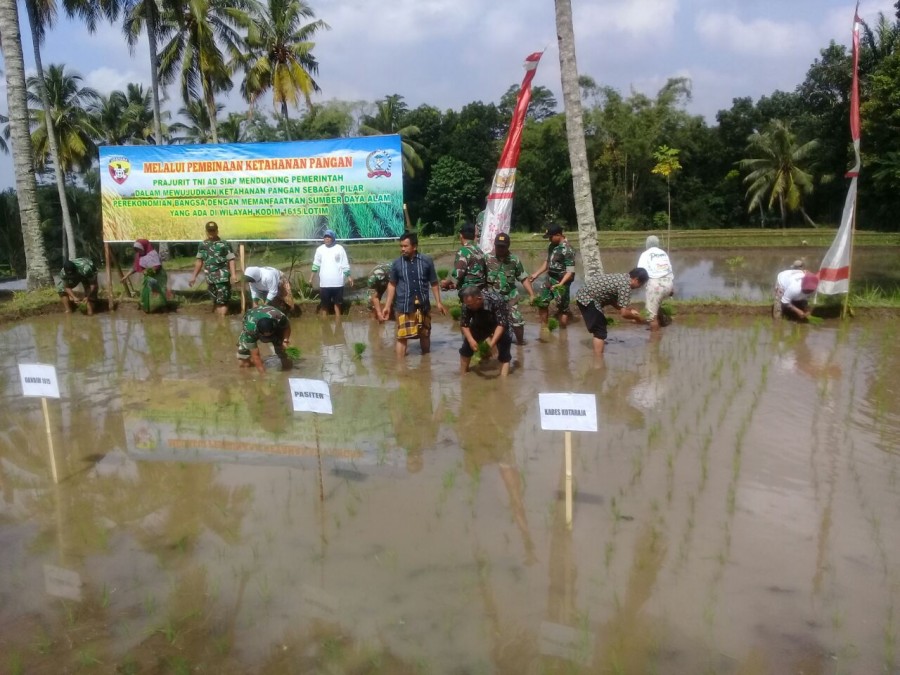 Penanaman padi Varitas Ciherang secara simbolis diatas lahan seluas 1 hektar tersebut melibatkan masyarakat setempat dalam rangka pembinaan ketahanan pangan kepada masyarakat dengan tema “Melalui pembinaan ketahanan pangan Prajurit TNI-AD siap mendukung pemerintah dalam mewujudkan ketahanan pangan sebagai pilar perekonomian bangsa dengan memanfaatkan sumber daya alam yang ada di wilayah Kodim 1615/Lotim”.