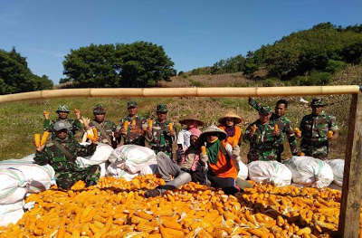 “Kami bersama anggota secara kontinyu melakukan Upsus dibidang ketahanan pangan dengan melakukan pendampingan kepada para petani mulai dari proses penyemaian penanaman hingga panen, dan ini semua kami laporkan secara berkala kepada pimpinan”, ujar Danramil dilokasi panen jagung itu.