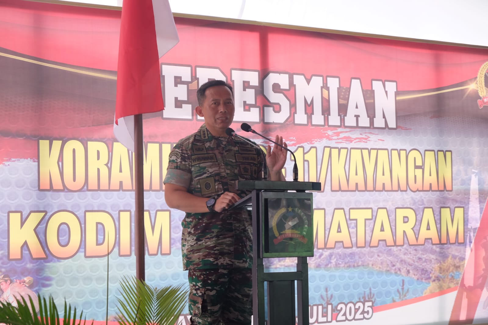 Lombok Utara, NTB – “Jadikan Koramil ini bukan hanya simbol kehadiran negara, tapi rumah bagi rakyat, tempat masyarakat datang dengan rasa percaya dan penuh harapan,” pesan tegas Danrem 162/Wira Bhakti Brigjen TNI Moch. Sjasul Arief, S.Sos., dalam sambutannya yang dibacakan Kepala Staf Korem, Kolonel Inf Wirawan Eko Prasetyo, S.E., M.H., saat meresmikan Koramil 1606-11/Kayangan, Jumat (25/07/2025).