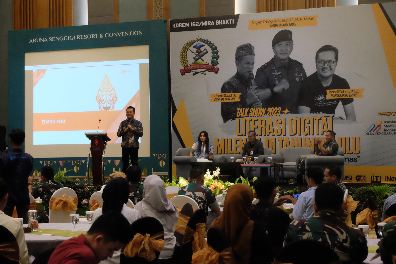 Menyadari pentingnya peran generasi muda dalam Pemilu, Korem 162/WB menyelenggarakan Talkshow Literasi Digital dengan tema “Peran Milenial Mewujudkan Indonesia Emas” yang akan diselenggarakan pada Hari Rabu Tanggal 13 Desember 2023 pukul 09.00 – 12.00 WITA di Grand Aruna Ballroom Hotel Aruna Senggigi Kabupaten Lombok Barat. Sebagai narasumber, hadir Danrem 162/WB, Brigjen TNI Agus Bhakti, S.I.P., M.I.P., M.Han. Ketua KPU Provinsi NTB Suhardi Soud,SE, dan Founder Drone Emprit Ismail Fahmi, S.T., M.A., Ph.D.