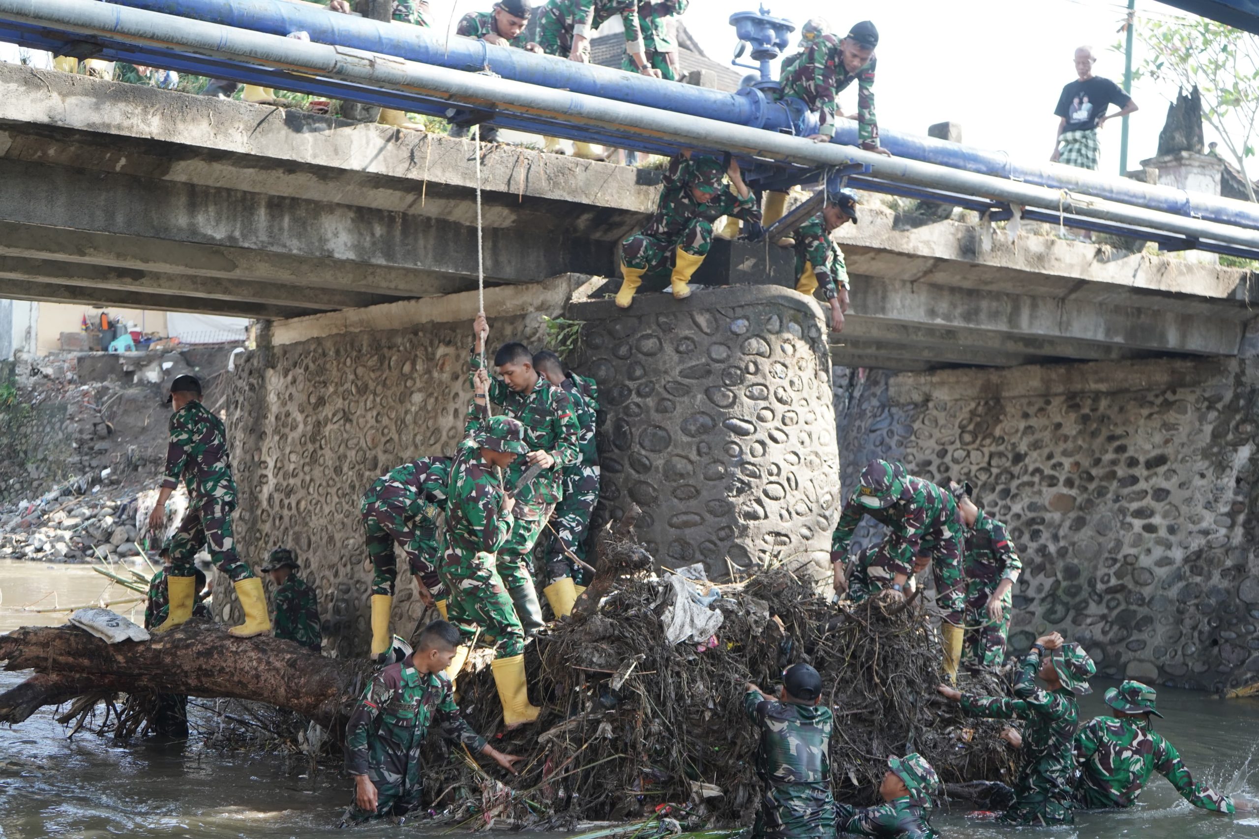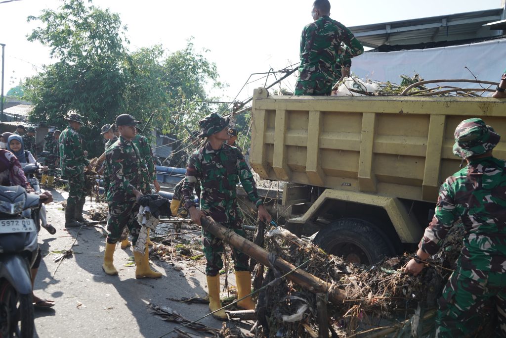 Ribuan prajurit TNI dari Korem 162/Wira Bhakti dikerahkan dalam kegiatan ini, didukung oleh personel dari instansi lain dan relawan masyarakat. Mereka bahu-membahu membersihkan sisa-sisa banjir, mulai dari sampah plastik, ranting pohon, hingga lumpur yang mengendap di jalanan, saluran air dan fasilitas umum.