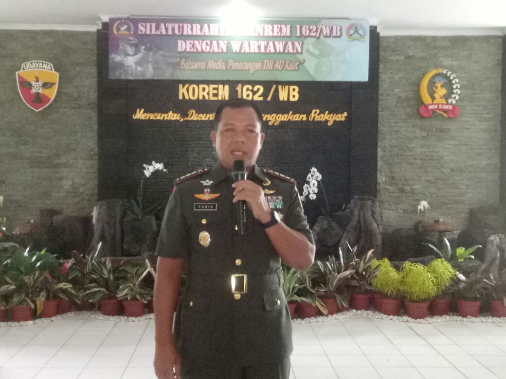 Danrem 162/WB Kolonel Inf H. Farid Makruf, M.A., dalam sambutannya mengucapkan rasa syukur dan terima kasih kepada rekan media maupun para undangan yang telah berkenan hadir dalam acara tersebut.
