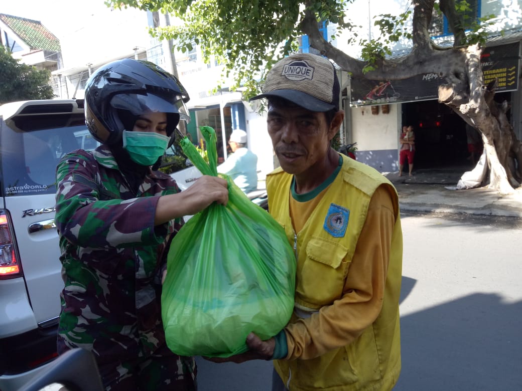 Mataram – Korps Wanita Angkatan Darat atau disingkat Kowad yang bertugas di satuan jajaran Korem 162/WB Segarnizun Mataram, di tengah pandemi Covid-19 melakukan aksi kemanusiaan peduli sesama dengan berbagi paket bingkisan sembako kepada masyarakat khususnya masyarakat yang membutuhkan terutama lansia, pedagang asongan dan pemulung dibeberapa titik pinggiran jalan seputar kota mataram, Kamis (30/4).