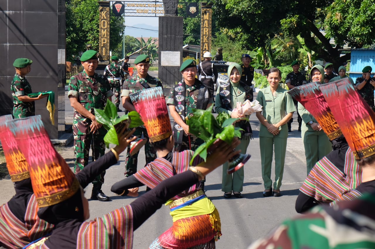 Pangdam disambut dengan upacara kehormatan yang meriah, termasuk pengalungan selendang, Tarian Kembang Sembah serta pertunjukan Drum Band Canka Wira Yudha. Beliau disambut langsung oleh Danyonif 742/SWY Letkol Inf Trijuang Danarjati, S.A.P. dan jajaran perwira Yonif 742.