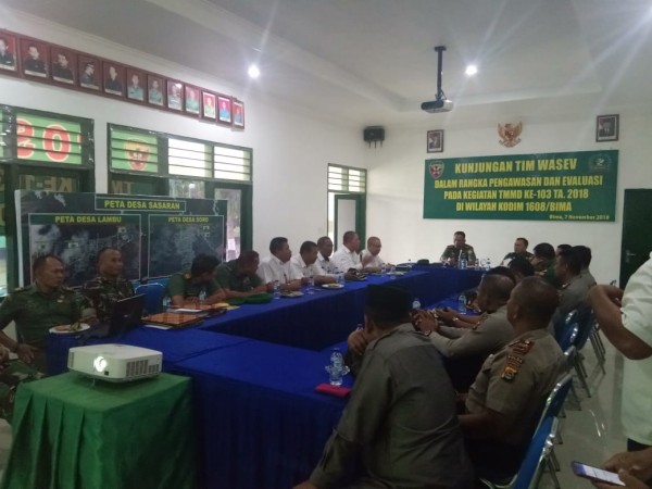 Sebelum Tim Wasev melakukan pengecekan langsung dilapangan tentang hasil pelaksanaan kegiatan TMMD, terlebih dahulu Dandim 1608/Bima selaku Dansatgas TMMD ke 103 wilayah Kabupaten Bima memberikan paparan di Aula Makodim Bima. Dandim Bima dalam paparannya menyampaikan beberapa alasan dipilhnya Desa Lambu Kecamatan Lambu sebagai sasaran TMMD karena selain lokasinya paling ujung dan terpencil juga rentan dengan perkelahian antar kampung.