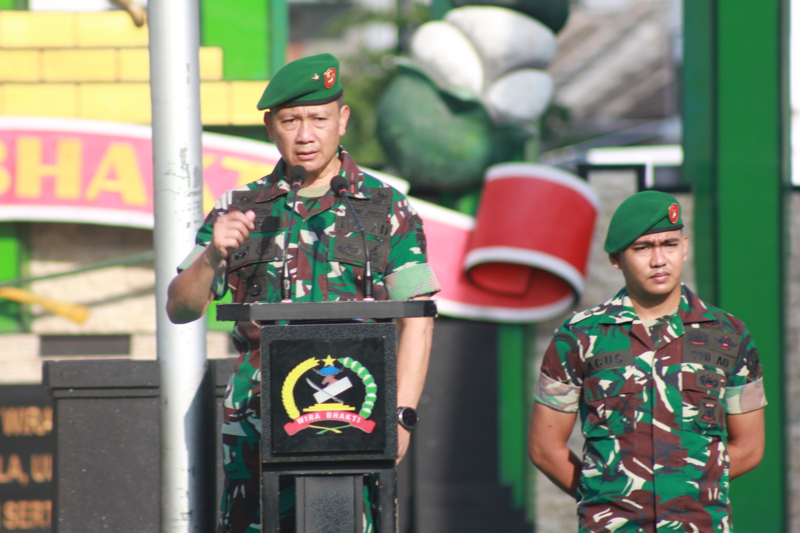 “Kita ketahui bersama telah terjadi kejadian gesekan beruntun antara TNI dan Polri dikarenakan sikap arogansi yang berlebihan, saya tekankan mulai detik ini, hari ini dan seterusnya saya tidak akan mentorerir semua kejadian pelanggaran yang dilakukan oleh setiap oknum Prajurit, saya tidak mau Danyon dan Dandim saya dicopot karena ulah Prajurit yang tidak bertanggung jawab, saya sampaikan kepada Komandan satuan agar setiap minggu sekali dilaksanakan jam Komandan sampaikan Santi Aji dan apa yang menjadi penekanan Panglima TNI mari kita laksanakan bersama serta jaga nama TNI karena kepercayaan Publik kepada TNI 94 persen, dan sebentar lagi kita memasuki tahun politik serta perintah Panglima TNI, Kasad dan Pangdam IX/Udayana Netral harga mati.” tegas Jenderal Bintang Satu tersebut.