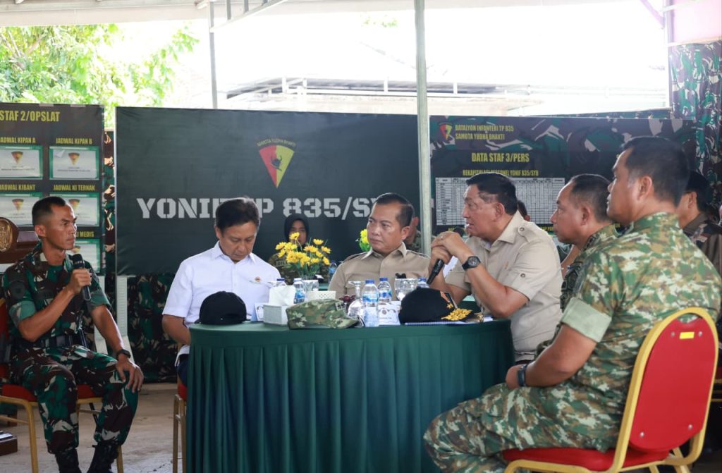 Rombongan tiba pukul 10.00 WITA dan disambut Danyonif TP 835/SYB Letkol Inf Muhammad Arifianto, S.I.P., yang memaparkan progres logistik dan fasilitas satuan. Kegiatan ditutup dengan penandatanganan pesan dan kesan oleh Menhan RI, Panglima TNI, dan Menkes RI untuk seluruh prajurit Yonif 835/SYB.