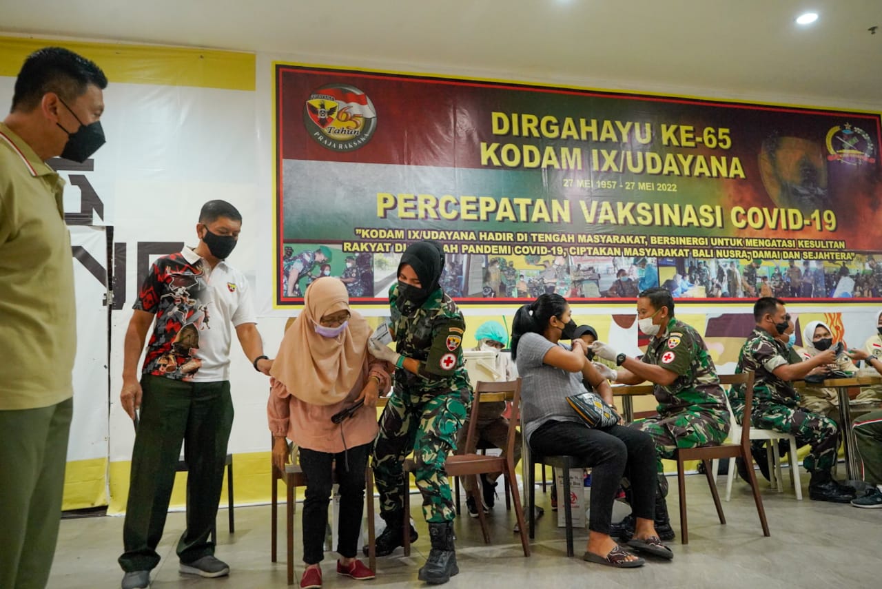 Mataram NTB – Menjelang Dirgahayu Kodam IX/Udayana Ke-65 Tahun 2022 yang jatuh pada tanggal 27 Mei 2022 mendatang, Korem 162/WB menggelar Vaksinasi Covid-19 dengan tema “Mendukung Percepatan Penanganan Covid-19 Untuk Masyarakat Sehat dan Pemulihan Ekonomi Nasional Menuju Indonesia Maju.”