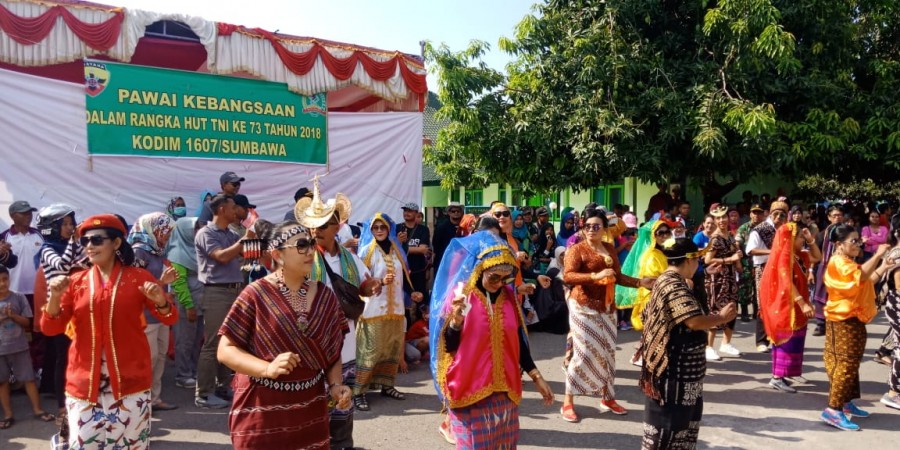 Sumbawa – Dalam rangka memperingati HUT RI Ke-73, Kodim 1607/Sumbawa menggelar pawai kebangsaan, berbagai macam budaya nusantara dirangkum dalam pawai tersebut. Pawai ini diikuti instansi pemerintahan yang ada di Kabupaten Sumbawa, instansi vertikal, kecamatan se Kabupaten Sumbawa, berbagai macam ethnis serta para pelajar SMP dan SMA/SMK. Pawai dimulai dari Makodim 1607/Sumbawa lalu mengelilingi sekitaran kota sumbawa lalu kembali lagi ke Makodim.