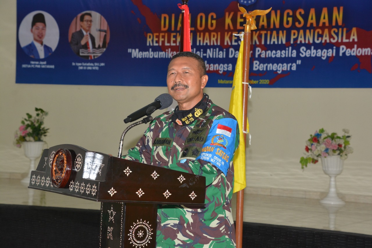 Dalam paparannya, Kasrem 162/WB Kolonel Arm I Made Kariawan menyampaikan tentang peran dan kedudukan Pancasila sebagai Dasar Negara dimana Pancasila menjadi dasar dan sumber hukum dalam penyelenggaraan negara, Pancasila sebagai jiwa dan kepribadian bangsa Indonesia.