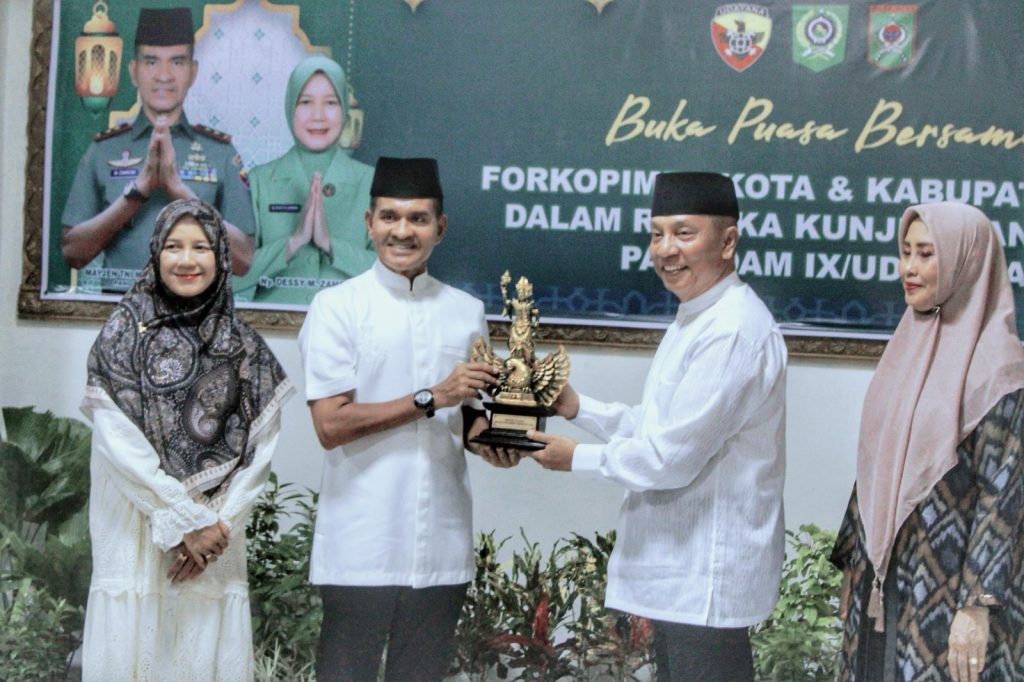 Kota Bima, NTB – Menjalin kebersamaan di bulan suci Ramadan, Pangdam IX/Udayana Mayjen TNI Muhammad Zamroni, S.I.P., M.Si., bersama jajaran menjalin silaturahmi dan buka puasa bersama Forum Koordinasi Pimpinan Daerah (Forkopimda) Kota dan Kabupaten Bima. Acara yang berlangsung di Kantor Walikota Bima, ini menjadi ajang memperkuat sinergi antara TNI dan pemerintah daerah dalam menjaga stabilitas wilayah, pada Senin (10/3/2025).