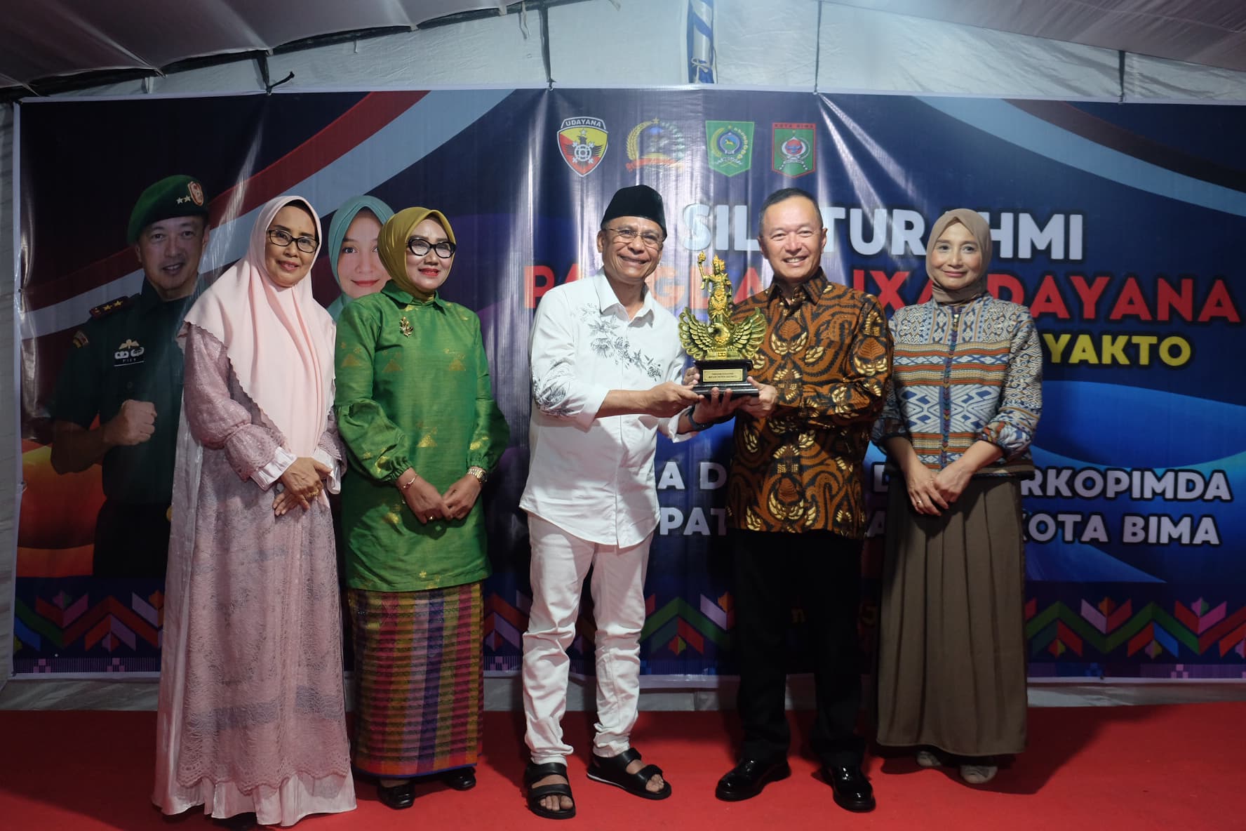 Acara silaturahmi ditutup dengan penyerahan plakat/cenderamata dan sesi foto bersama, dilanjutkan dengan jamuan makan malam. Kunjungan ini memperkuat sinergi antara TNI AD dengan Pemerintah Daerah Kabupaten dan Kota Bima, serta tokoh agama, tokoh masyarakat, tokoh adat, dan Rukun Warga Tionghoa. Terjalinnya komunikasi terbuka dan kepekaan terhadap kondisi sosial dan strategis wilayah menjadi indikator kuat kolaborasi antara TNI dan pemerintah daerah dalam menjaga keamanan dan ketertiban. (Penrem162)