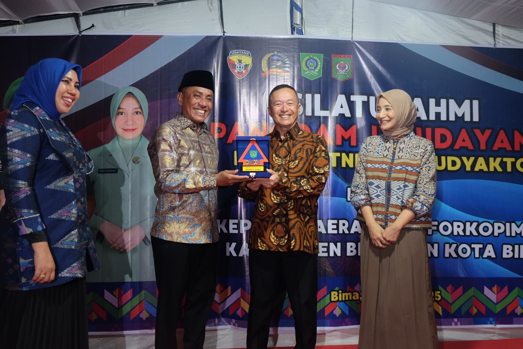 Bima, NTB – Panglima Kodam IX/Udayana, Mayjen TNI Piek Budyakto, S.H., M.H., didampingi Ketua Persit Kartika Chandra Kirana PD IX/Udayana, Ny. Indah Piek Budyakto, beserta rombongan, melaksanakan kunjungan silaturahmi ke Pendopo Bupati Bima pada Selasa (03/06/25).