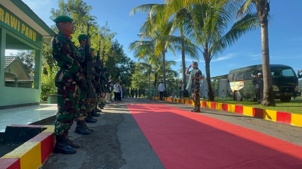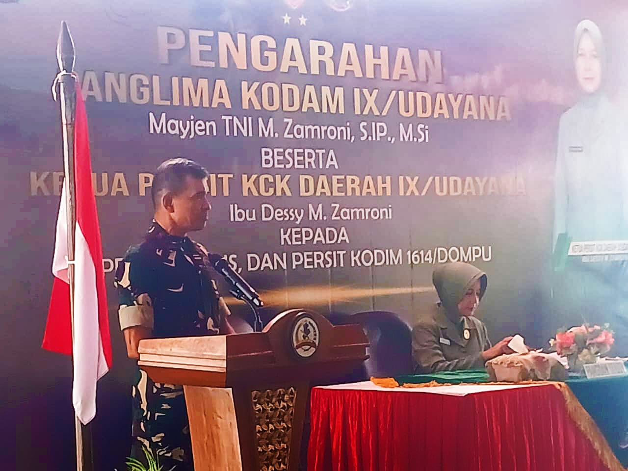 Kedatangannya disambut dengan jajar kehormatan dan laporan dari Dandim 1614/Dompu, Letkol Kav Riyan Oktiya Virajati, S.T., M.M., sebelum memberikan pengarahan kepada 280 prajurit dan keluarga besar TNI.