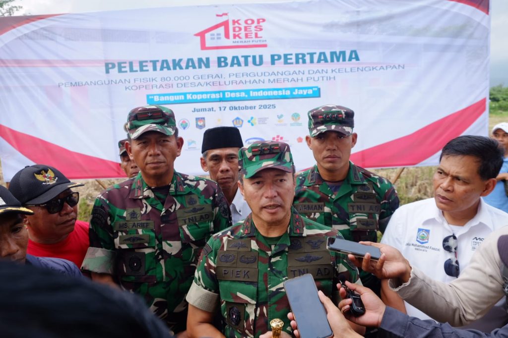 LOMBOK BARAT, NTB — Pangdam IX/Udayana Mayjen TNI Piek Budyakto, memimpin secara resmi peletakan batu pertama (groundbreaking) pembangunan Koperasi Desa/Kelurahan Merah Putih (KDKMP) se-Indonesia di Desa Lingsar, Kecamatan Lingsar, Kabupaten Lombok Barat, Jumat (17/10/2025).