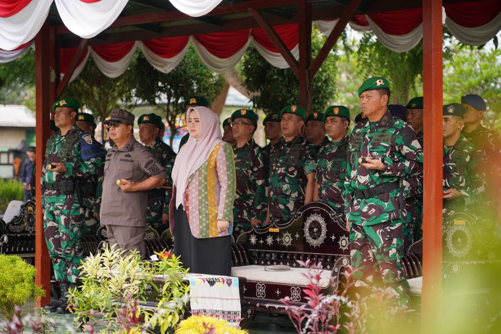 Turut hadir dalam upacara tersebut Wakil Gubernur NTB Hj. Indah Dhamayanti Putri, S.E., M.I.P., Danrem 162/Wira Bhakti Brigjen TNI Moch. Sjasul Arief, S.Sos., Danrindam IX/Udayana Brigjen TNI Anwar, S.H., Pj. Sekda NTB H. Lalu Muhammad Faozal, M.Si., jajaran pejabat Kodam IX/Udayana, Forkopimda NTB, para Dandim, Dan/Kabalak Ajudam, perwira staf, tokoh agama, tokoh masyarakat, warakawuri TNI AD, serta pengurus Persit Kartika Chandra Kirana.