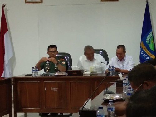 Dompu – Pangdam IX/Udayana Mayjen TNI Benny Susianto, S.IP., menerima paparan pelaksanaan TNI Manunggal Membangun Desa (TMMD) ke 104 tahun 2019 dari Dandim 1614/Dompu Letnan Kolonel Czi Arief Hadiyanto, S.IP., selaku Komanda Satgas TMMD di ruang rapat Bupati Dompu, Rabu (27/3).