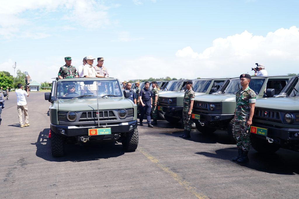 (Puspen TNI). Panglima TNI Jenderal TNI Agus Subiyanto bersama Kapolri Jenderal Pol. Listyo Sigit Prabowo menerima penyerahan Kendaraan Khusus (Ransus) Maung MV3 buatan PT. Pindad yang dilakukan secara simbolis oleh Menteri Pertahanan (Menhan) RI Sjafrie Sjamsoeddin, bertempat di Appron Lanud Husein Sastranegara, Bandung, Jawa Barat, Sabtu (01/03/2025).
