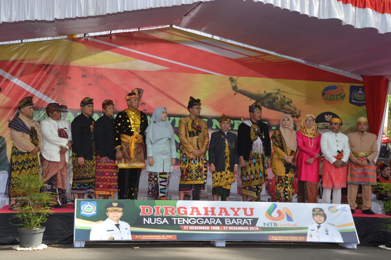Acara defile dan defile budaya NTB disaksikan langsung Gubernur NTB, Danrem 162/WB Kolonel Czi Ahmad Rizal Ramdhani, S.Sos. SH. M.Han., Kapolda NTB Irjen Pol Drs. Nana Sudjana, MM., Forkopimda NTB.