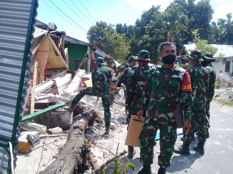 Tanjung – Pasca melakukan evakuasi korban, memberikan pertolongan terhadap korban luka dan meninggal dan mengelar dorongan logistik untuk para pengungsi, sejak Sabtu kemarin ratusan personel TNI melaksanakan pembersihan puing-puing reruntuhan rumah milik warga di beberapa tempat di wilayah Kabupaten Lombok Utara (KLU).