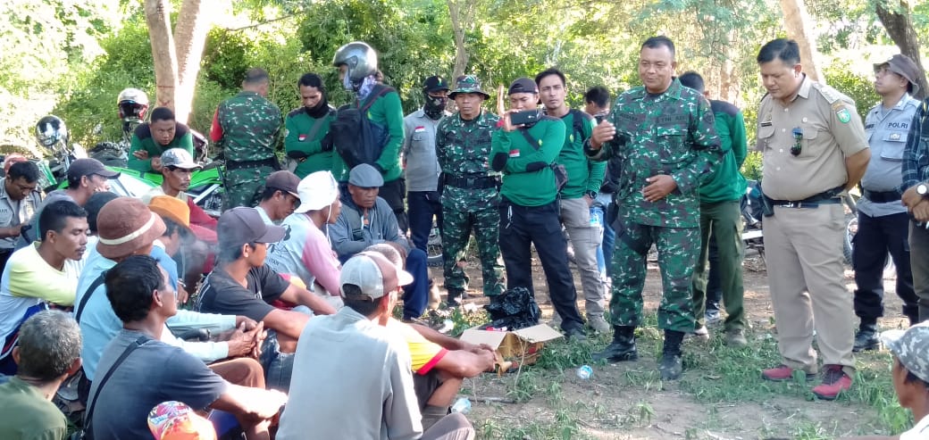 Sumbawa – Patroli gabungan dari Kodim 1607/Sumbawa bersama Polsek Moyo Utara dan BKPH Puncak Ngengas Batulanteh dipimpin Camat Moyo Utara Ardian Pranata Putra, S.IP., bersama Danramil 1607-12/Moyo Hilir Kapten Inf I Ketut Budiana di lokasi Kawasan Hutan Olat Lake RTK 78 Dusun Ai Bari Desa Kukin Kecamatan Moyo Utara Kabupaten Sumbawa NTB, Senin (27/1).