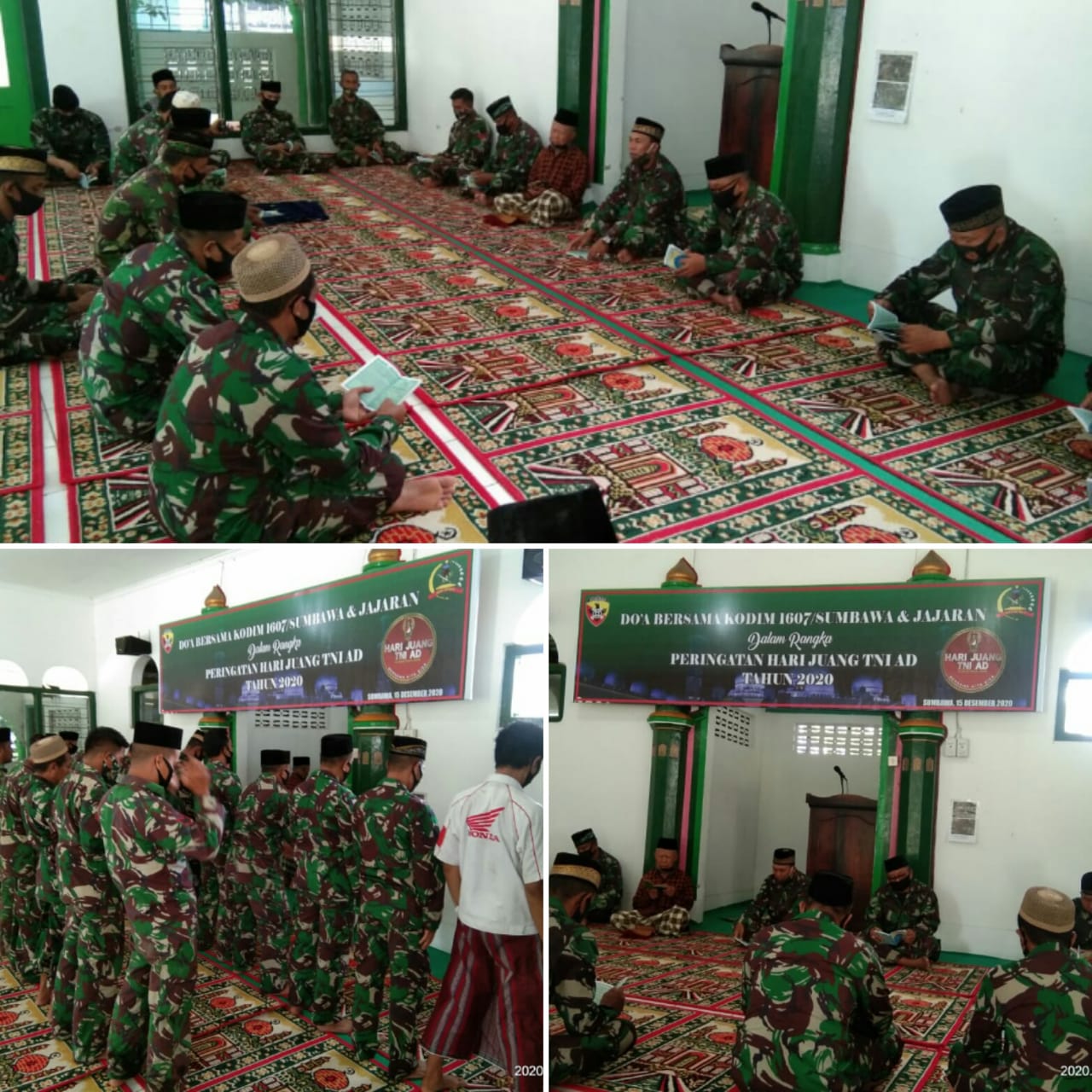 Sumbawa – Dalam momentum peringatan Hari Juang TNI AD tahun 2020, untuk mengenang dan mendoakan para pendahulu bangsa, para pejuang yang turut mempertahankan Kemerdekaan Republik Indonesia di masa lalu, Kodim 1607/Sumbawa menggelar doa bersama bertempat di Mushola Abul Khoir Kodim 1607/Sumbawa. Selasa (15/12/2020).