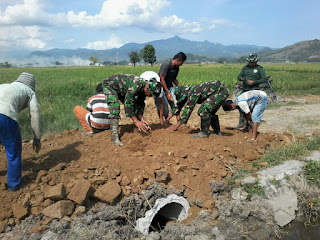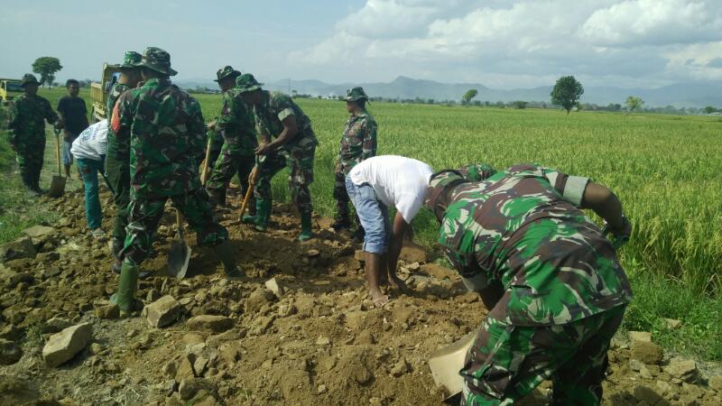 emasuki hari kesembilan pelaksanaan TMMD KE-98 di wilayah Kodim 1608/Bima Kemanunggalan TNI – Rakyat semakin Erat, hal ini terlihat dari antusias warga yg cukup tinggi untuk membantu Satgas TMMD dalam menyelesaikan pekerjaan yang ada. Kegiatan ini melibatkan 150 orang personil Satgas TMMD, yang terdiri dari TNI-AD 111 orang, TNI-AL 8 orang, TNI-AU 8 orang, Polri 20 orang, dan Pemkab 3 orang, serta tenaga masyarakat 100 orang (Jum’at, 14 April 2017).Pembangunan Infrastruktur jaringan jalan usaha tani yang selama ini menjadi harapan serta angan-angan masyarakat, khususnya para petani akan segera terwujud dengan dibangunnya jalan tersebut. Disamping itu dibangunnya jalan usaha tani melalui program Operasional TMMD Ke-98 diwilayah Kodim 1608/Bima sejalan dengan program pemerintah yaitu salah satu upaya mempercepat program Swasembada Pangan Nasional. Diharapkan melalui kegiatan TMMD ini, akan lebih mampu menjadi perekat bagi TNI-Rakyat, khususnya dijajaran Satkowil dalam menjalin Komunikasi Sosial dengan komponen masyarakat dalam kehidupan berbangsa dan bernegara.