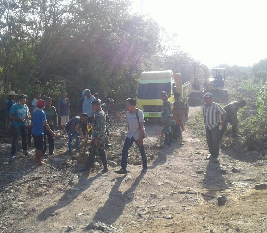 “Kami bersama Dinas Pekerjaan Umum (PU) Kabupaten Lombok Timur konsisten membuka jalan dengan mengerahkan beberapa alat berat dan mobil Dam Truk pengangkut tanah untuk menimbun badan jalan yang masih terlihat berlubang”, ungkap Dansatgas yang juga Dandim setempat.