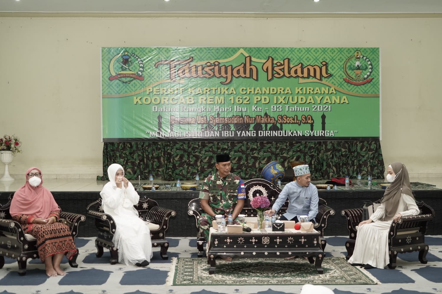 Tausiyah islami bertema “Menjadi Istri Dan Ibu Yang Dirindukan Surga” ini dalam rangka memperingati Hari Ibu ke-93 Tahun 2021, dihadiri personel militer (Perwira, Bintara, Tamtama) dan Pegawai Negeri Sipil (PNS) Se-Garnizun Mataram serta Pengurus Persit KCK Koorcabrem 162 PD lX/Udayana.