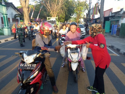 Sumbawa Besar – Ketua Persit KCK Cabang XXVI Kodim 1607/Sumbawa Ny. Nana Samsul Huda bersama anggota Persit lainnya membagikan makanan dan minuman untuk berbuka puasa bagi pengguna jalan Hasanudin Sumbawa Besar, Jumat (10/5)