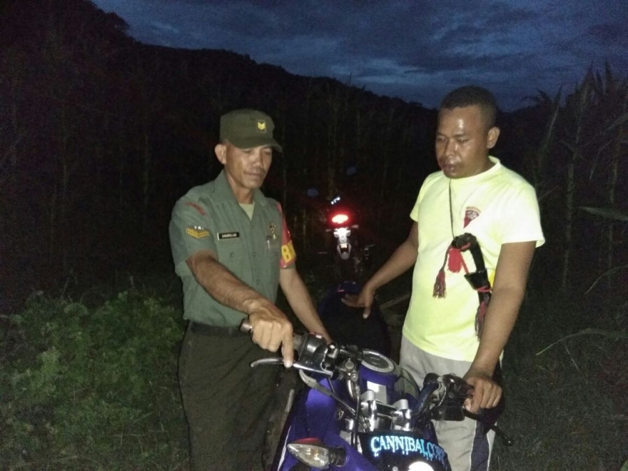 Sekitar pukul 18.30 waktu setempat, Saharullah dan Rifaid berhasil menemukan satu unit sepeda motor Yamaha Vixion berwarna biru lis putih tanpa Plat Nomor Polisi yang diduga milik pelaku. “Sepeda motor Vixion ini kami temukan di kebun jagung milik warga Dusun Wane Desa Tolo Tangga”, ujar rifaid.