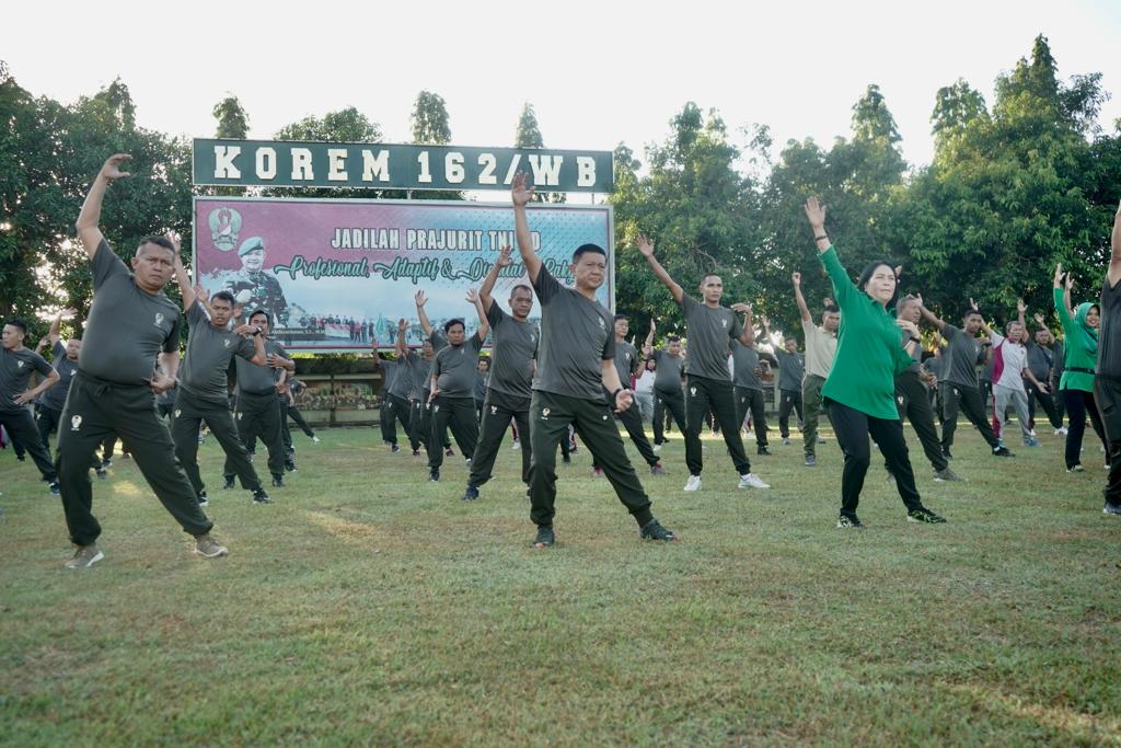 “Pagi ini sengaja Saya mengadakan acara olahraga bersama baik secara langsung maupun secara Virtual karna tidak ada lagi waktu untuk mendatangi satuan satuan untuk pamitan kepada keluarga besar saya yaitu warga Korem 162/WB bersama jajaran, dikesempatan inilah saya gunakan untuk Pamit diri’ Ucap Brigjen Aris mengawali sambutannya.