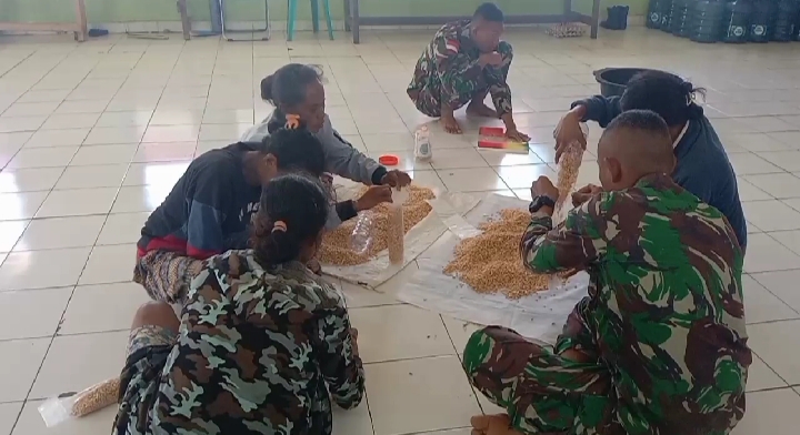 Di hari yang haru dan bahagia ini, Danpos Laktutus Serka Sudarmono bersama anggota memberikan pelatihan produk unggulan pembuatan tempe di Pos Laktutus kepada masyarakat Desa Fohoeka Kecamatan Nanaet Duabesi Kabupaten Belu NTT, Kamis (13/5/2021).