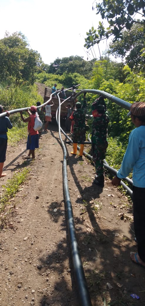 Bima – Musim hujan dimanfaatkan warga Desa Labuan Kenanga Kecamatan Tambora Kabupaten Bima untuk memasang saluran pipa air bersih menuju Kampung Doro Lede, Kampung Bali dan Kampung Sambeka Desa setempat. Anggota Koramil 1608-05/Donggo dipimpin Danposramil Tambora Pelda Tasrif bersama warga setempat melaksanakan gotong royong pemasangan pipa air bersih dari mata air Sori Sumba, Jumat (27/12).