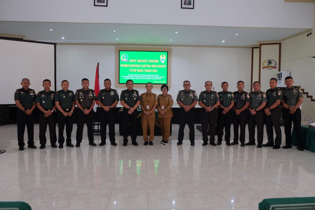Mataram, NTB – Kepala Staf Korem 162/Wira Bhakti, Kolonel Inf Wirawan Eko P. S.E., M.H., pimpin Rapat Anggota Tahunan (RAT) untuk menutup buku tahun 2024 Primer Koperasi (Primkop) Kartika Wira Bhakti yang berada di bawah naungan Korem 162/Wira Bhakti. Acara ini dilaksanakan di Aula Sudirman Makorem 162/WB, Jln. Lingkar Selatan No.162 Pagutan, Kec. Mataram, Kota Mataram, pada Selasa (29/04/25)
