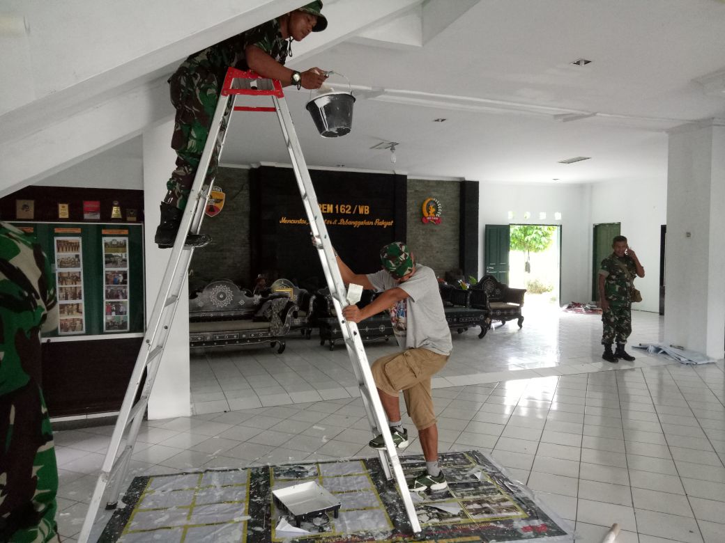 Menyambut datangnya hari raya Idul Fitri, dan untuk menyambut kedatangan Panglima TNI di Korem 162/WB dalam rangka kegiatan safari Ramadhan, anggota jajaran Korem 162/WB melaksanakan kegiatan pembersihan pangkalan dan lingkungan sekitar kantor Makorem 162/WB. Kegiatan pembersihan yang dilaksanakan di Markas Korem 162/WB ini, mulai dari mengecet seluruh bangunan kantor hingga menata taman dan membersihkan lingkungan sekelilingnya. Meskipun puasa, namun anggota Korem 162/WB ini tetap semangat dalam melaksanakan kegiatan pembersihan yang dimulai sejak pukul 08.00 Wita hingga menjelang waktu berbuka, Danrem 162/WB Kolonel Czi Ahmad Rizal Ramdhani, S.Sos., S.H., M.han. pada kesempatan tersebut juga ikut bergabung dalam kegiatan pembersihan tersebut. Hal ini menjadi motivasi tersendiri bagi para anggota untuk terus bekerja mengingat rencana kegiatan kunjungan safari Ramadhan Panglima TNI di Korem 162/WB akan dilaksanakan pada hari Rabu 30 Mei 2018. Danrem berharap pada saat kegiatan safari Ramadhan nanti Markas Korem 162/WB terlihat lebih bersih, rapi dan indah. Selain itu kegiatan pembersihan Markas ini juga merupakan salah satu bentuk penghargaan kepada pimpinan kita yang nantinya akan berkunjung ke satuan Korem 162/WB. Selain itu Danrem juga menyampaikan kepada seluruh anggota agar dibulan yang suci ini tidak hanya kebersihan lingkungan yang perlu dijaga namun juga kebersihan hati dan jiwa kita.