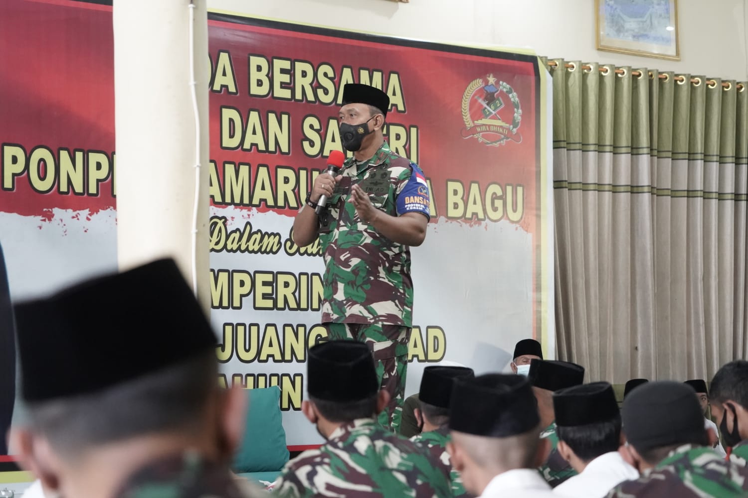 Lombok Tengah – Tentara Nasional Indonesia Angkatan Darat (TNI AD) jajaran Korem 162/WB dengan Santri dan Santriwati melaksanakan doa bersama di Yayasan Pondok Pesantren (Ponpes) Qamarul Huda desa Bagu Kecamatan Pringgarata Kabupaten Lombok Tengah, Rabu (15/12/2021).